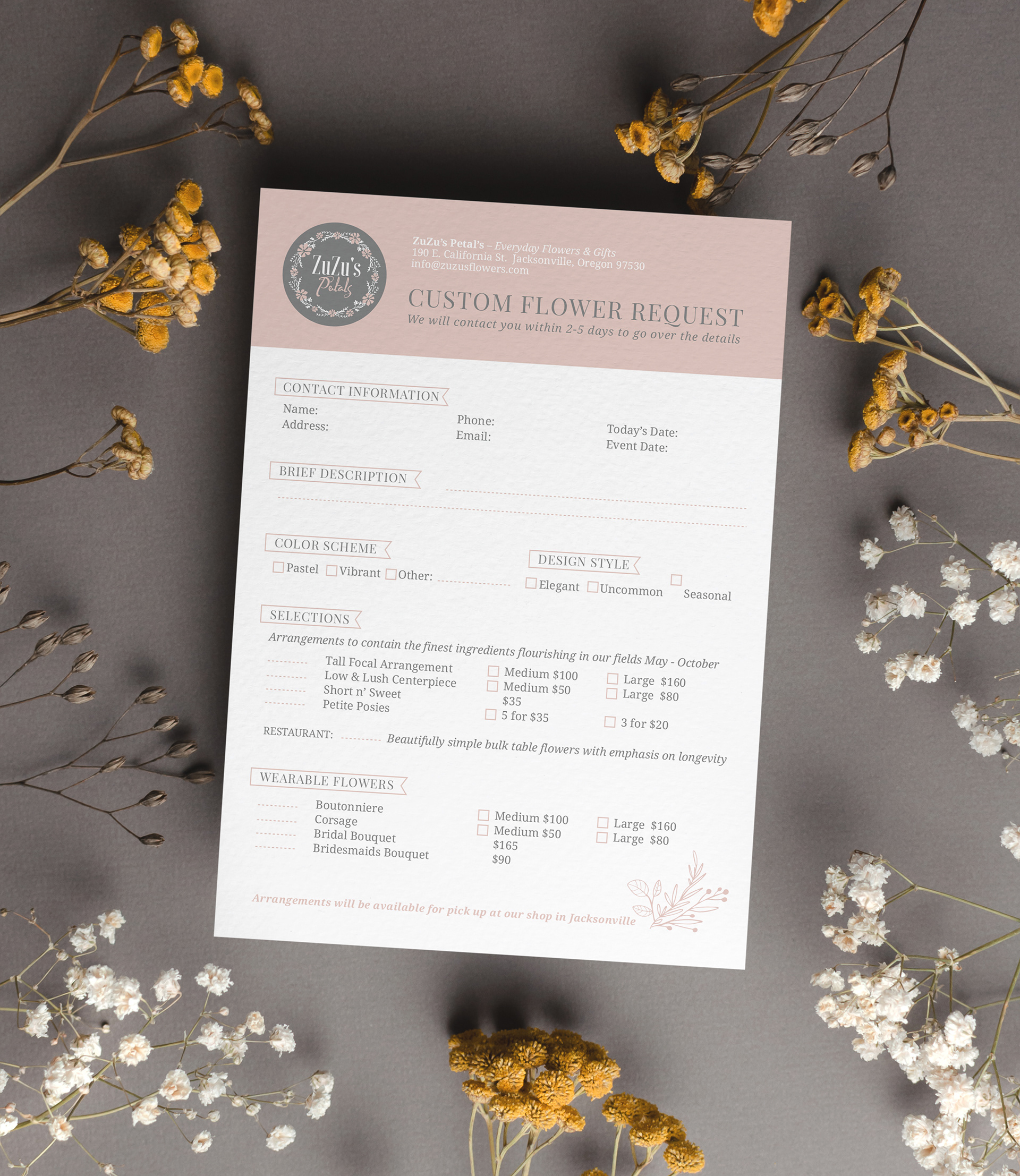 Logo design, website and print design for a florist